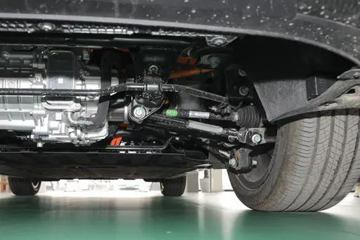 底盘部分让我和朋友都留下了深刻印象。零跑B10采用了CTC 2.0 Plus电池底盘一体化技术,整车车身扭转刚度达到36000牛米每度,这个数值在同级别甚至部分20万级合资SUV中也算靠前。过坑洼路段时,车身没有松散感,整体质感扎实紧凑。高刚性不仅提升了操控稳定性,也减少了车门、天窗等部件因车身变形带来的异响和磨损,耐用性更好。悬挂调校偏舒适,初段偏软,能有效过滤细碎路面震动。我们经过减速带、坑洼路面时,车内冲击感被控制得很合理。更难得的是,遇到连续起伏路面,底盘表现稳健,没有反复晃动的烦人感,一次压缩回弹后很快恢复稳定,提升了长途驾驶的舒适性,这是日常通勤和周末自驾游时都很实用的体验。